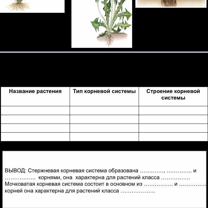 Ответ: кориандр, подорожник и одуванчик имеют стержневую корневую систему, а пшеница мочковатую. Вывод:стержневая образована главным, боковыми и придаточными корнями. Характерна для класса двудольных. Мочковатая образована боковыми и придаточными. Характерна для однодольных.