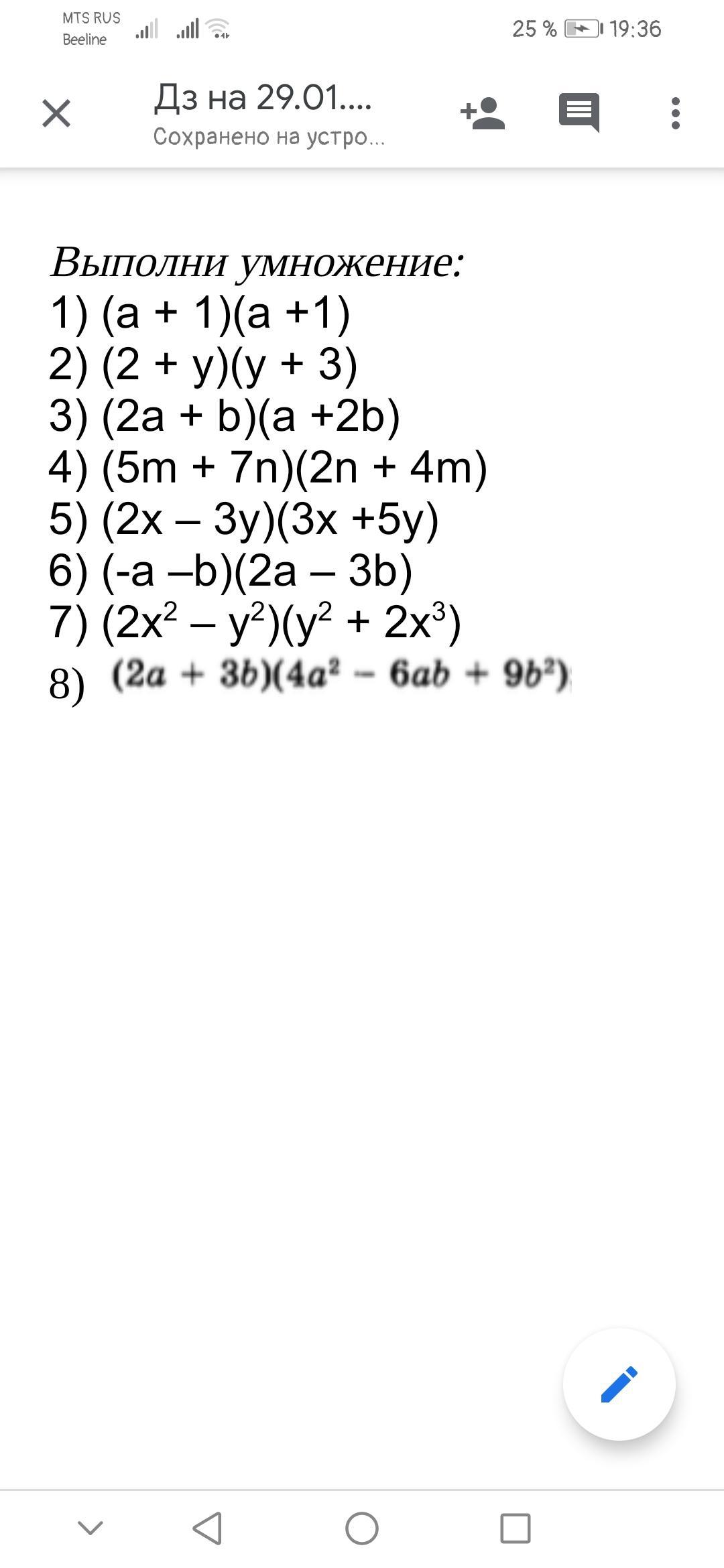 7. (2x^2-y^2)(y^2+2x^3)=2x^2y^2+2x^2•2x^3-y^2•y^2-2x^3y^2=2x^2y^2+4x^5-y^4-2x^3y^2