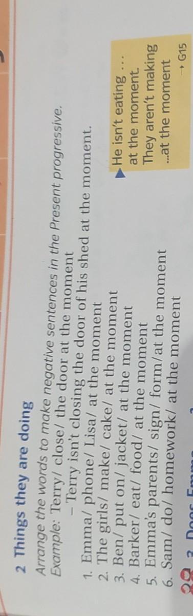 6. Sam is not doing homework at moment.