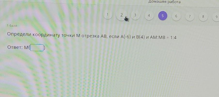 Найдём координату точки М. Известно, что точка А, имеет координату (-6), а отрезок АМ = 2 см, то из этого следует :