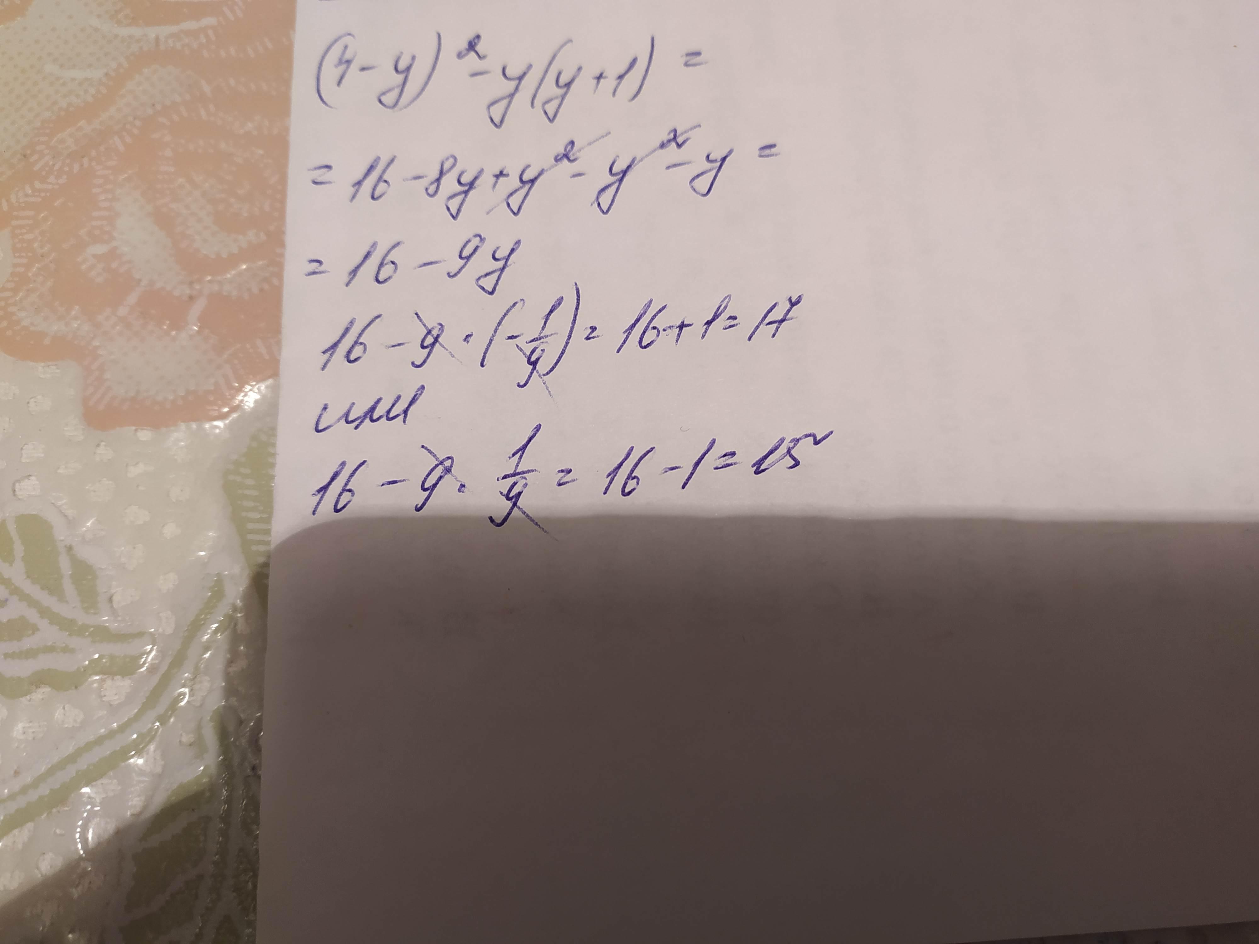 найдите значение выражения 4 - Y во второй степени минус игрек в скобочках игрек плюс 1 при Y равно - 1/9