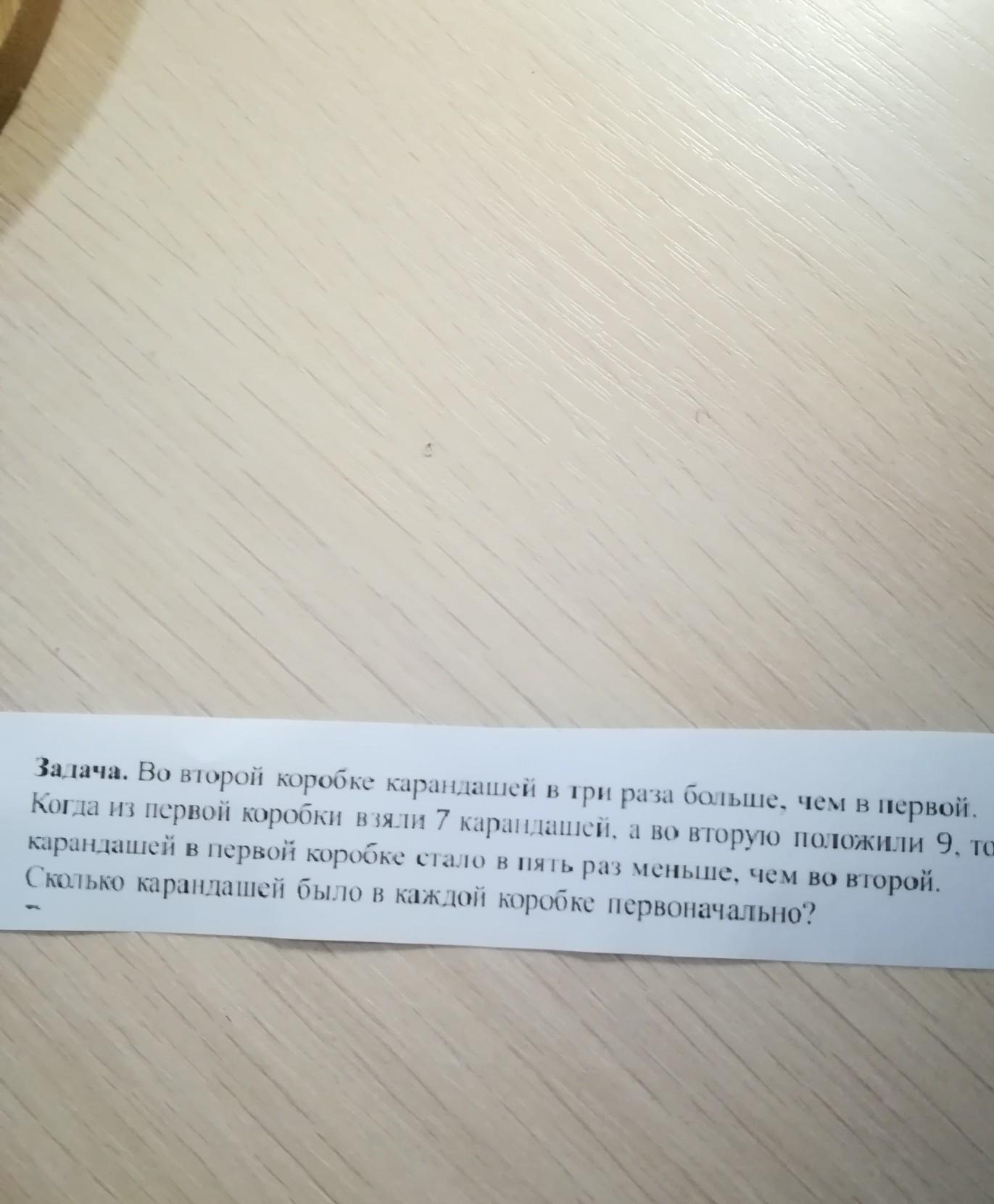 х-7 это первая коробка. И стало в 5 раз меньше. Почему вы тогда умножили, а не разделили?