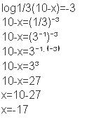 log 1/3 (10-x)=+3