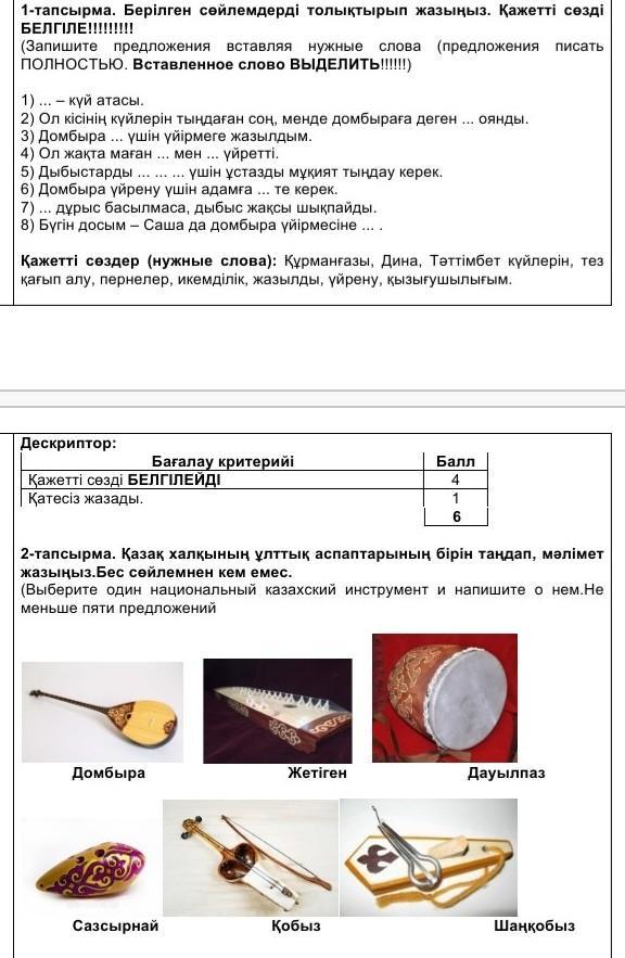 8.Бүгін досым Саша да домбыра үйірмесіне жазылды.