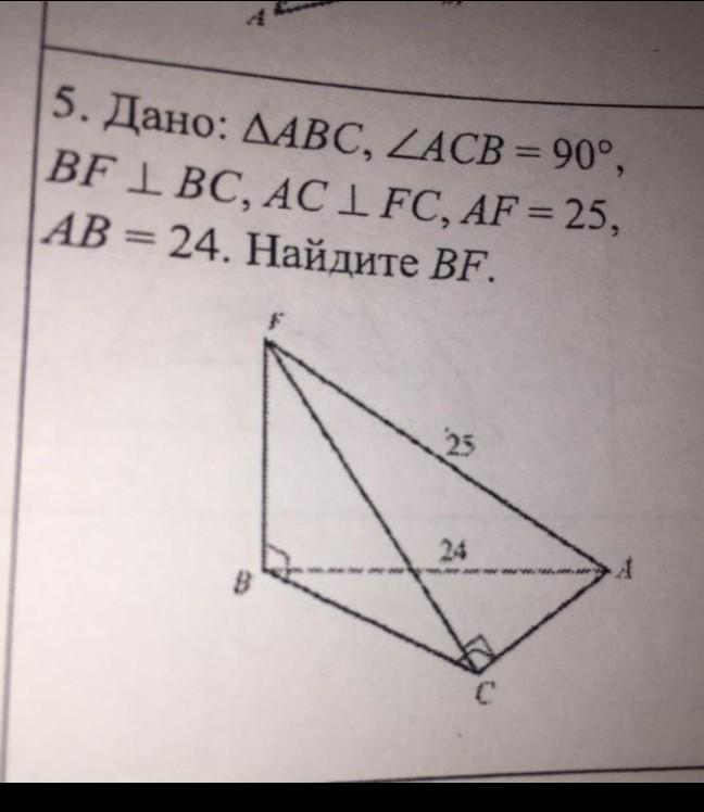 2) ВF ⟂ АС (см. п. 1), ВF ⟂ ВС (по условию), АC⋂ВC, тогда по признаку перпендикулярности прямой и плоскости ВF ⟂ (ABC), а значит и любой прямой, лежащей в этой плоскости. Получили , что ВF ⟂ BA