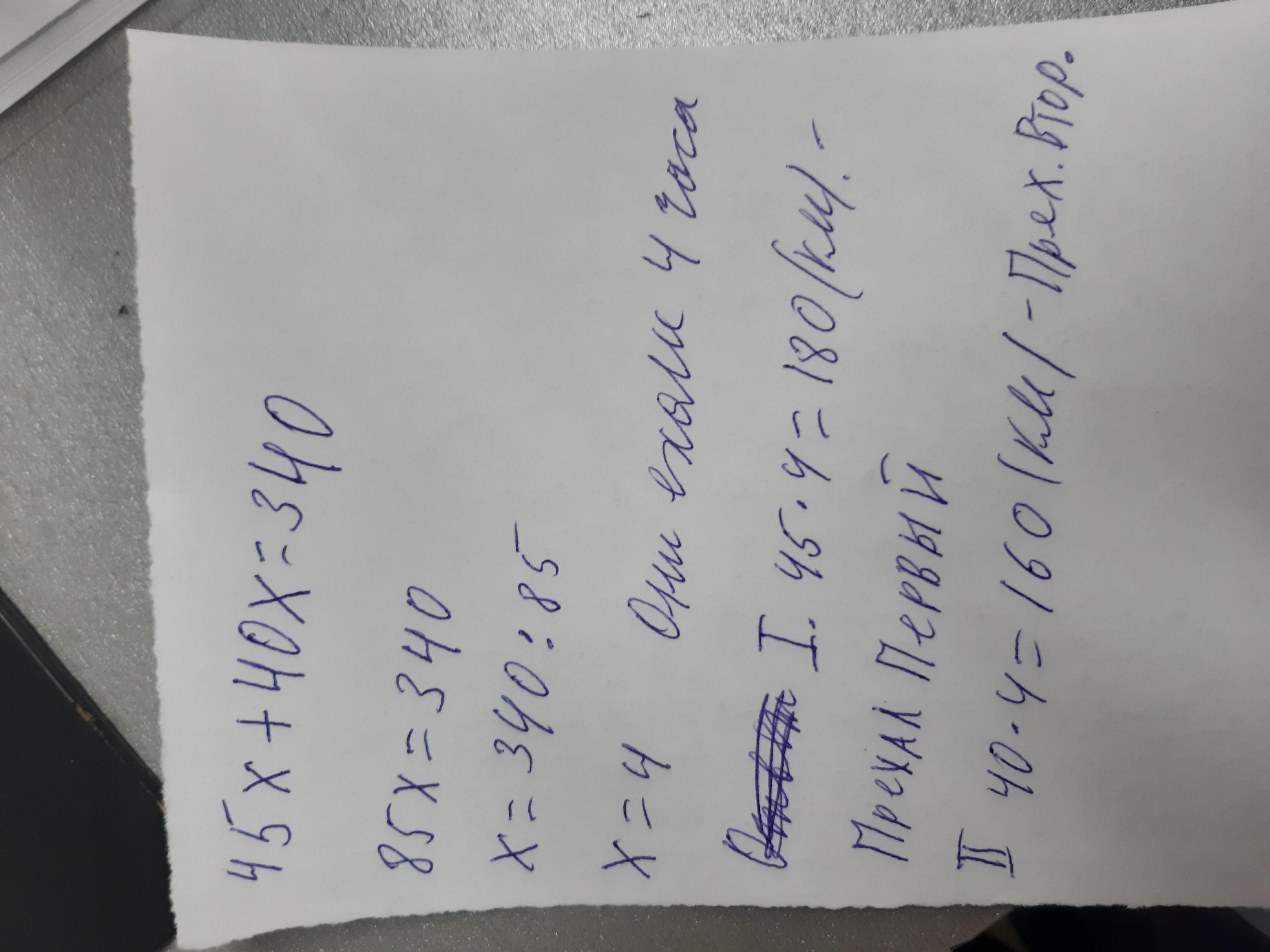 Из двух населенных пунктов одновременно выехали два мотороллера.Один мотороллер ехал со скоростью 40км/ч, а другой— 45км/ч. Какое расстояние до встречи проехал каждый мотороллер, если расстояние между населенными пунктами 340км?