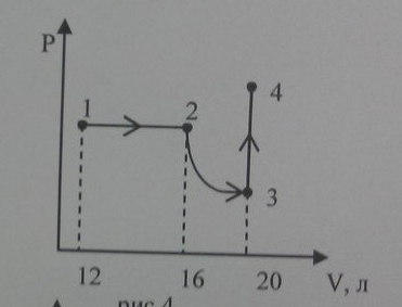 4 )найдем T1 из уравнения состояния V1/T1= V2/T2 T1=T2*V1/V2=400*12/16=300К