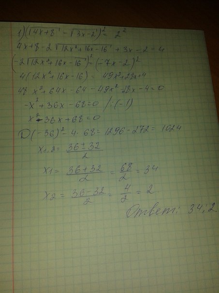 люди пожалуйста решите эти уравнения в первом ответ должен получится 34; 2 во втором уравнении 9; -2