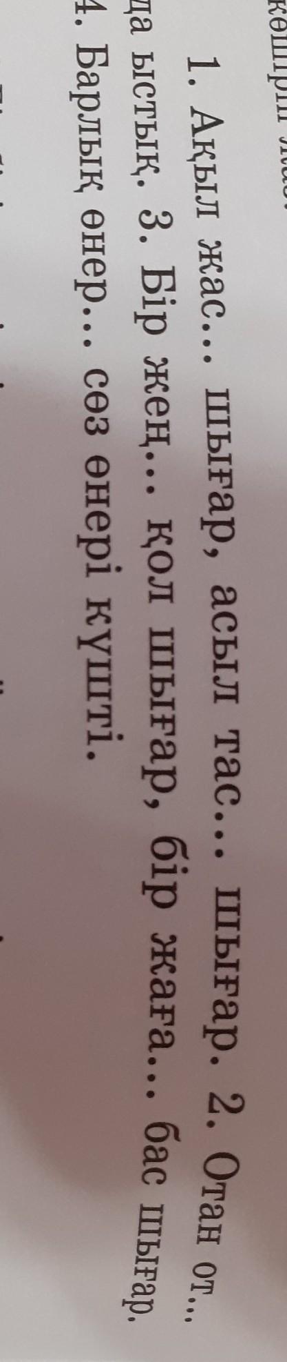 Көп нүктенің орнына тиісті жалғауды қойып,мақал-мәтелді кошіріп жаз. 32бет 66 жаттыгу. 4 сынып 2 болим