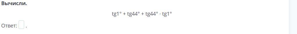 tg1° + tg44° + tg44° ∙ tg1° = tg(1° + 44°)·(1- tg44° ∙ tg1°) + tg44° ∙ tg1° =