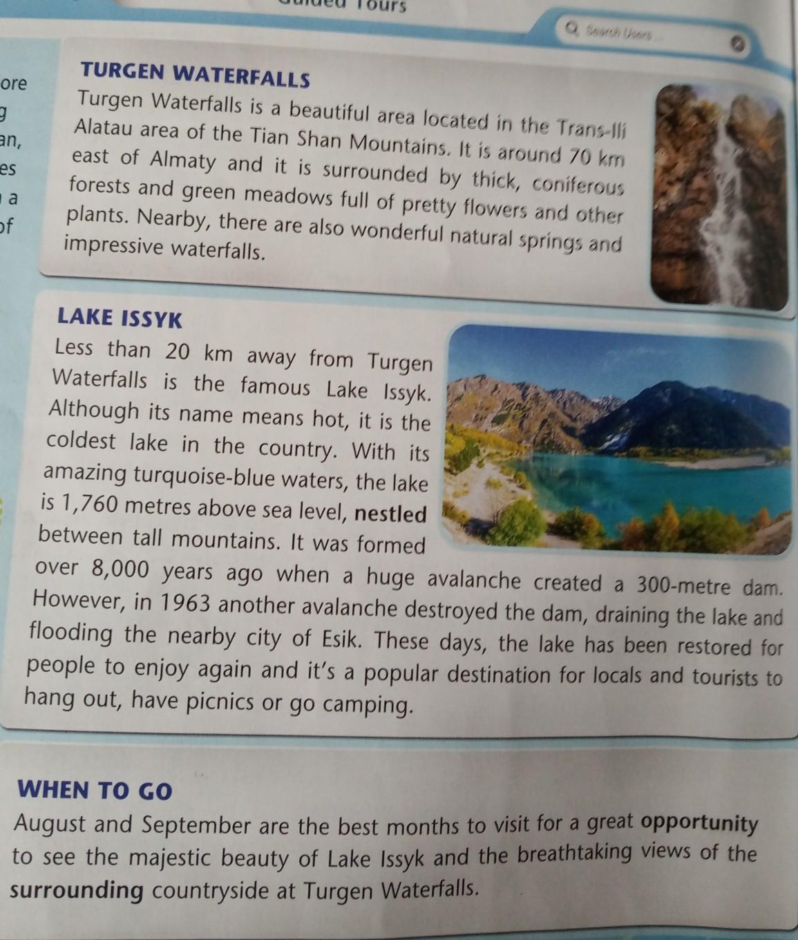 - Turgen Waterfalls and Lake Issyk are not far from one another. - TRUE