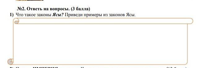 Самым известным, наверно, примером может служить то, что только чингизид может быть в праве занимать титул правителя( Эмир Тимур не принял титул хана как раз из-за этого). Смерть грозила тем, кто был уличен в сознательном обмане, в предательстве, лжесвидетельстве, а также невозвращение оружия, случайно утерянного владельцем в походе или в бою. Законы охраняли так же и женщин.