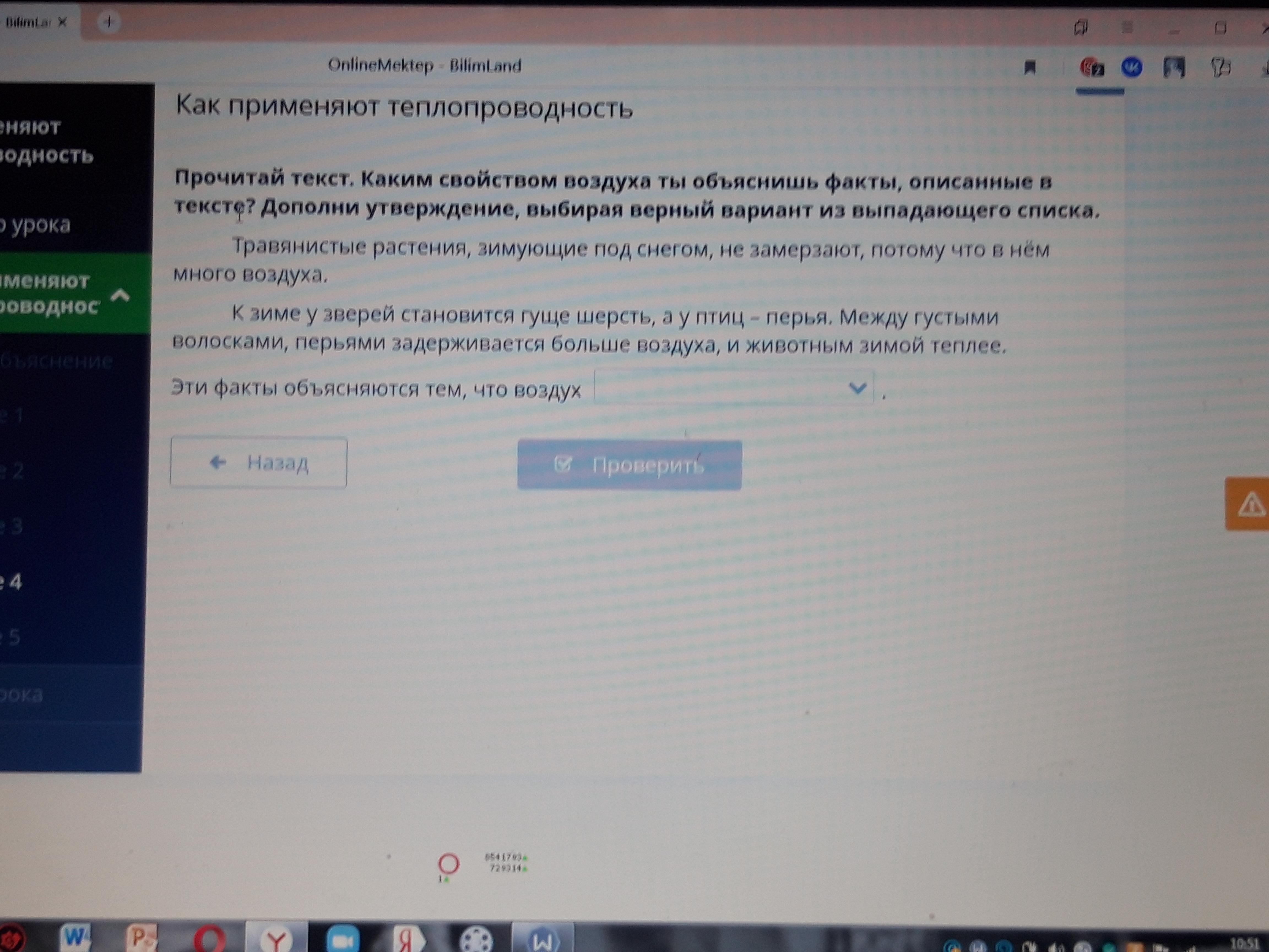 Прочитай текст. Каким свойством воздуха ты объяснишь факты, описанные в тексте? Дополни утверждение, выбирая верный выриант из выпадающего списка.