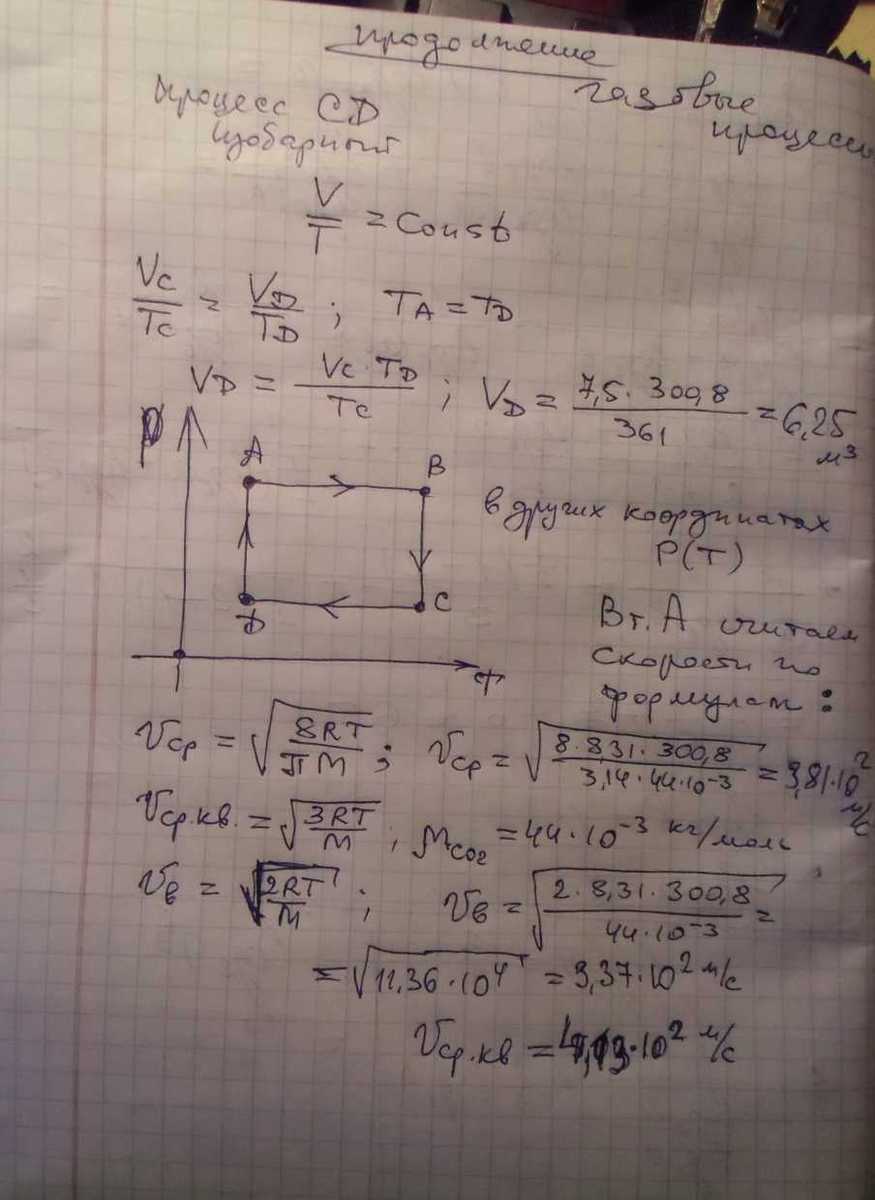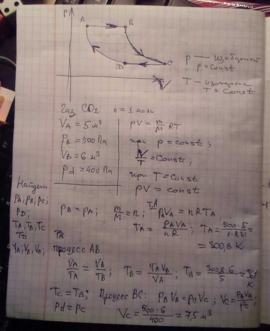 1) Рассчитать недостающие значения Р, V и Т для точек А, В, С, D. Нарисовать цикл в координатах, указанных в 6-ой колонке.