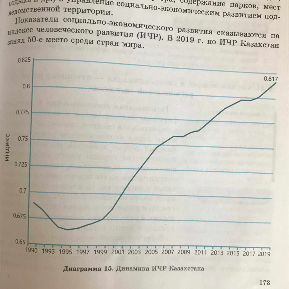 География нужно проанализировать диаграмму. На основе каких составляющих определяют ИЧР? Какие факторы социально-экономического развития привели к росту ИЧР Казахстана? (даю 50 баллов)