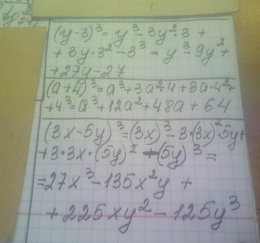 а)(y-3)³ b)(a+4)³ в)(3x-5y)³