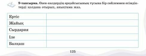 Өзен-көлдердің әрқайсысының тұсына бір сөйлеммен есімдік-