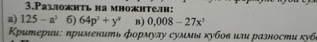 критерии: применить формулу,суммы кубов мои разности кубов