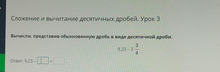 Вычисли, представив обыкновенную дробь в виде десятичной дроби.