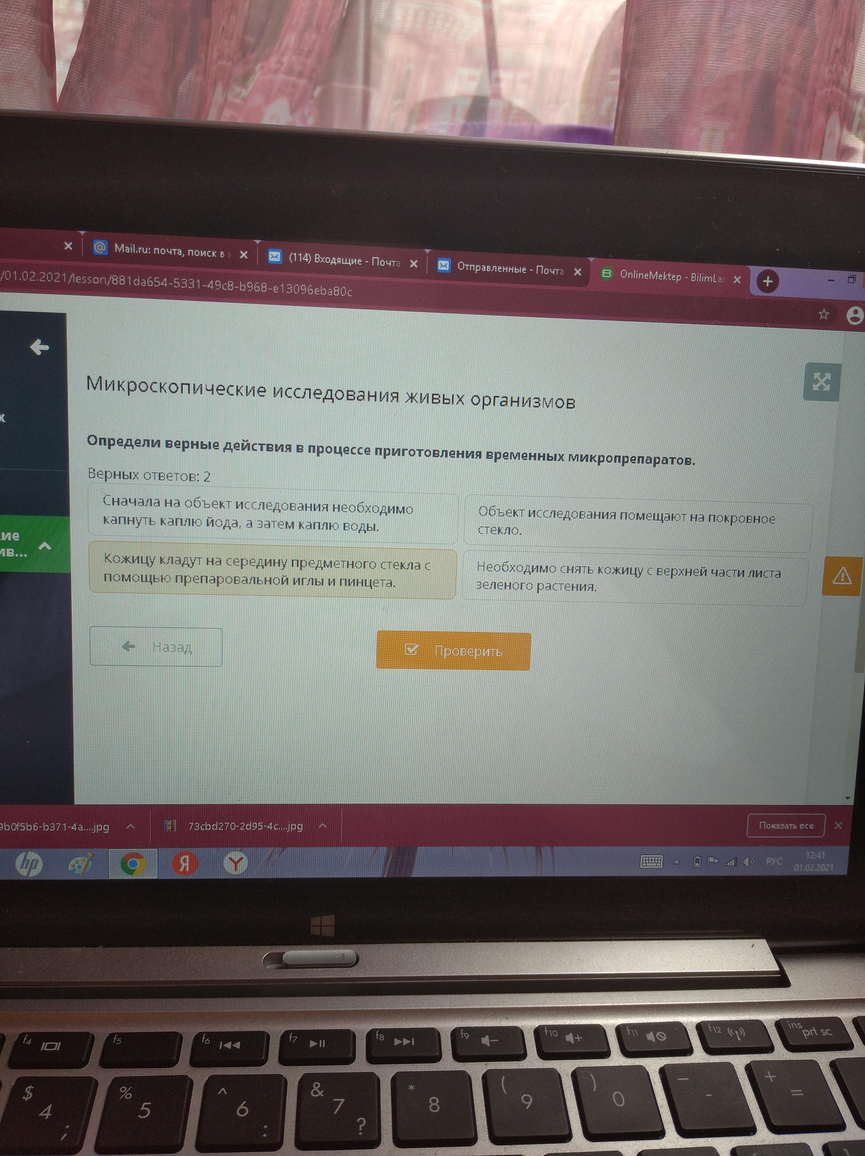- необходисо снять кожицу с верхней части листа зеленого растения