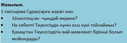 16 желтоқсан Қазақстан республикасының тәуелсіздік күні--- 1991 жылы 16 желтоқсан президентіміз мемлекет тәуелсіздігіне қол қойған күн болғандықтан осы күн мейрам болып саналады---Қазақстан тәуелсіздігін ең бірінші болып мойындаған АҚШ болады.