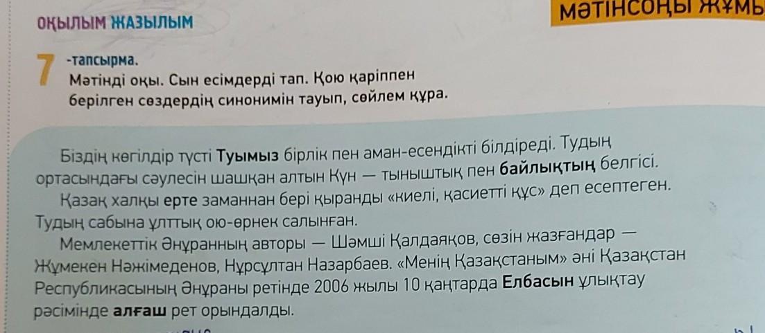 Сын есімдер - көгілдір , киелі , қасиетті , алтын ( бұл жерде сын есім болып келіп тұр ) , ұлттық