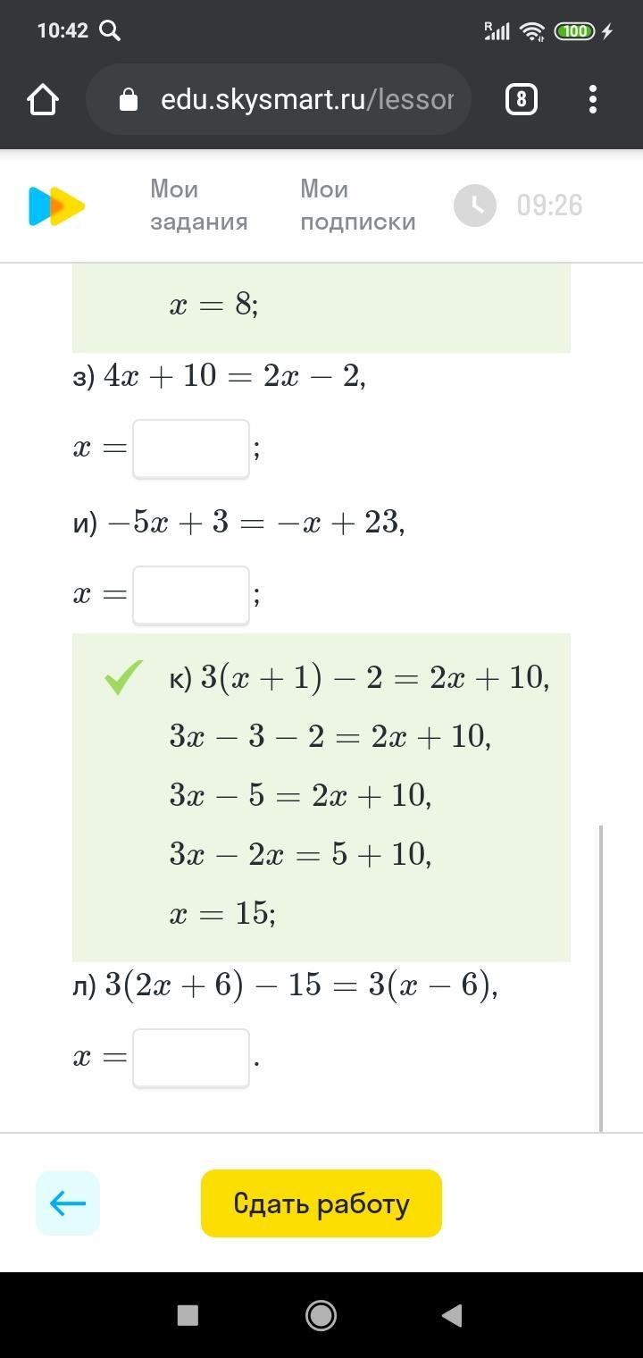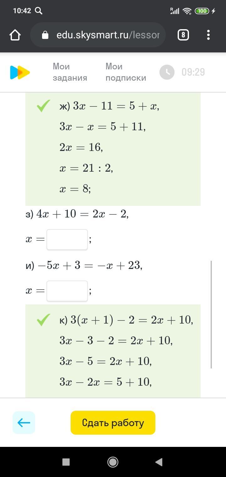 з) 4х + 10 = 2х - 2