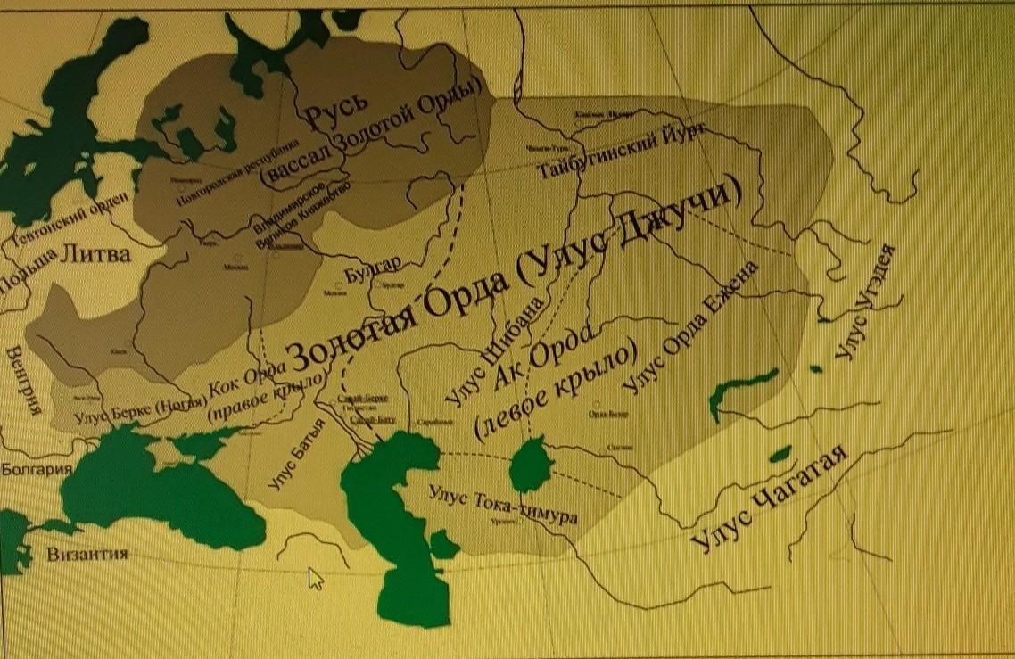 Нанести на контурную карту территорию Ак Орды, Золотой Орды, используя условные обозначения
