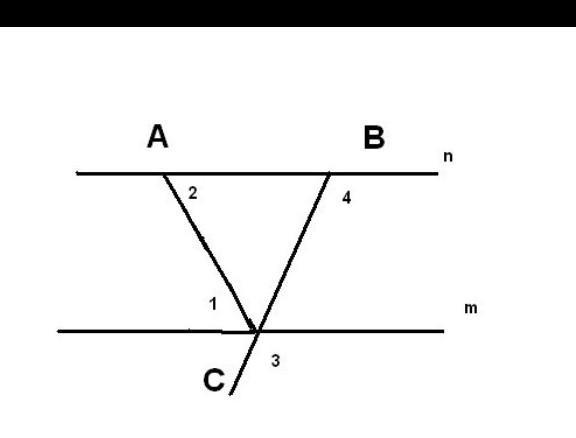 Угол 1 и угол 2- накрест лежащие углы при прямых n,m и секущей А . Следовательно n||m. Т.к. n||m угол 3 = углу 4
