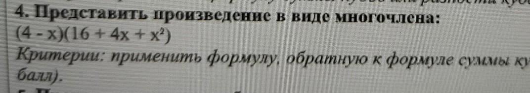(4 - x)(16 + 4x + x²) = 4³ - x³