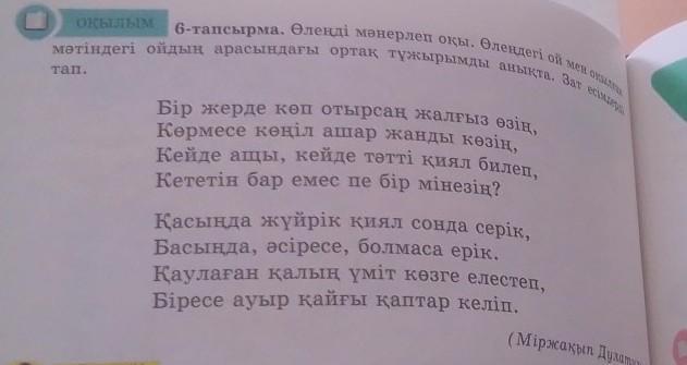 өлеңді мәнерлеп оқы.Өлеңдегі ой мен оқылған мәтіндегі ойдың арасындағы ортақ тұжырымды анықта зат есімдерді тап. срочнооо пжжж