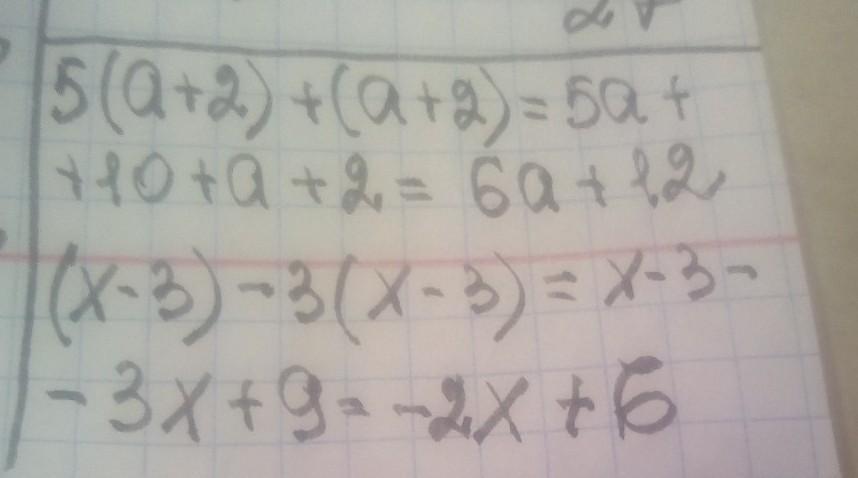 а) 5(а+2)+(а+2)=5а+10+а+2=6а+12