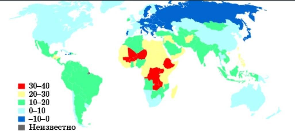 3 Страны Африки имеют самые высокие темпы естественного прироста.Верно.Естественный прирост здесь составляет 20-30 ‰.