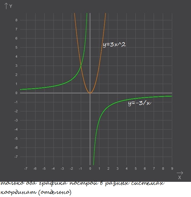 1:Построить графики функций у-3х в квадратеи у=-3/х