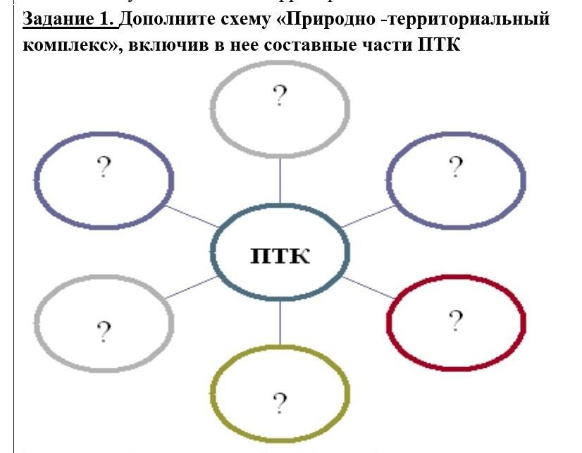 Задание 1. Дополните схему «Природно -территориальный комплекс», включив в нее составные части ПТК
