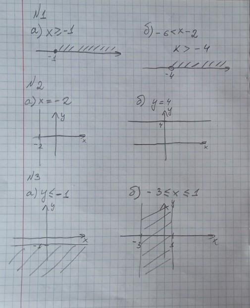 а) у ≤ –1; б) –3 ≤ х ≤ 1.