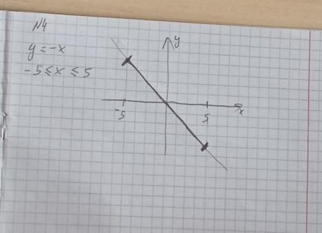 4. Изобразите на координатной плоскости множество точек, удовлетворяющих условиям: у = –х и –5 ≤ х ≤ 5.