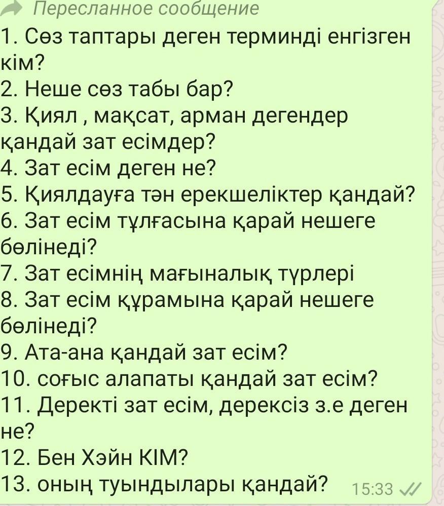 4.ЗАТ ЕСІМ - ЗАТТЫҢ,ҚҰБЫЛЫСТЫҢ АТЫН БІЛДІРІП,КІМ? НЕ? СҰРАҚҚА ЖАУАП БЕРЕДІ
