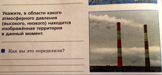 Низкого, по облачности и направлению дыма из труб ( дует восточный ветер ).