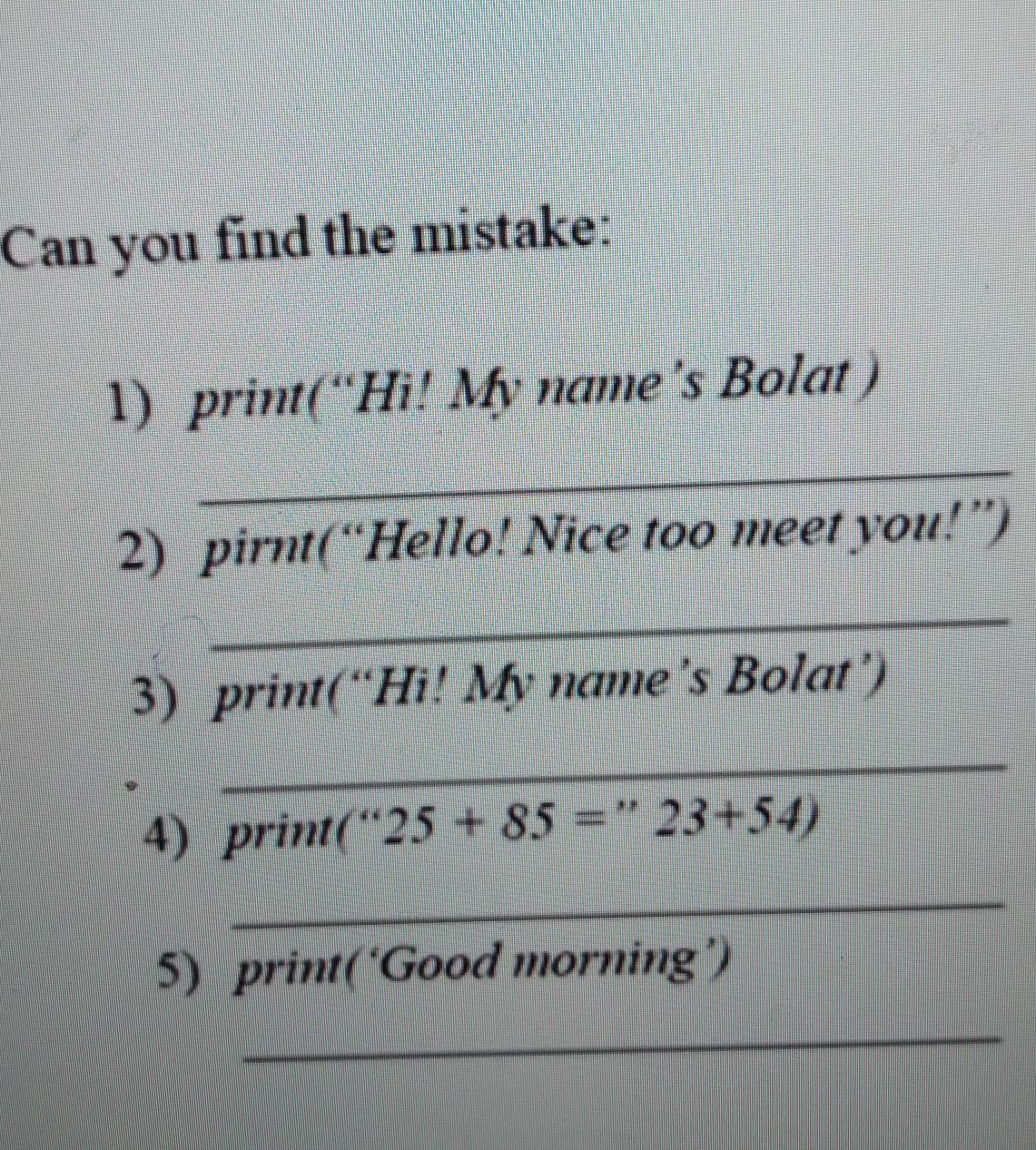 4. После "25 + 85 =" должна стоять запятая, правильно было бы так :