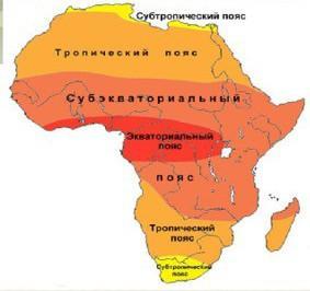 Большая часть Африки находится в экваториальном, субэкваториальном, тропическом, субтропическом климатических поясах, поэтому типы воздушных масс, оказывающих влияние на климат Африки — тропические и экваториальные.