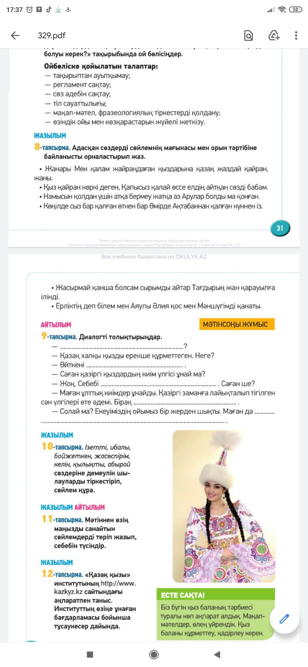 - Өйткені, қыз баласыз өмір болмайды. Осы қыз баласы болмағанда батыр да,ақын да,ғалым да дүниеге келмеуші еді. Қыз нәзік жаратылыс. Оларды ренжітпеу керек.