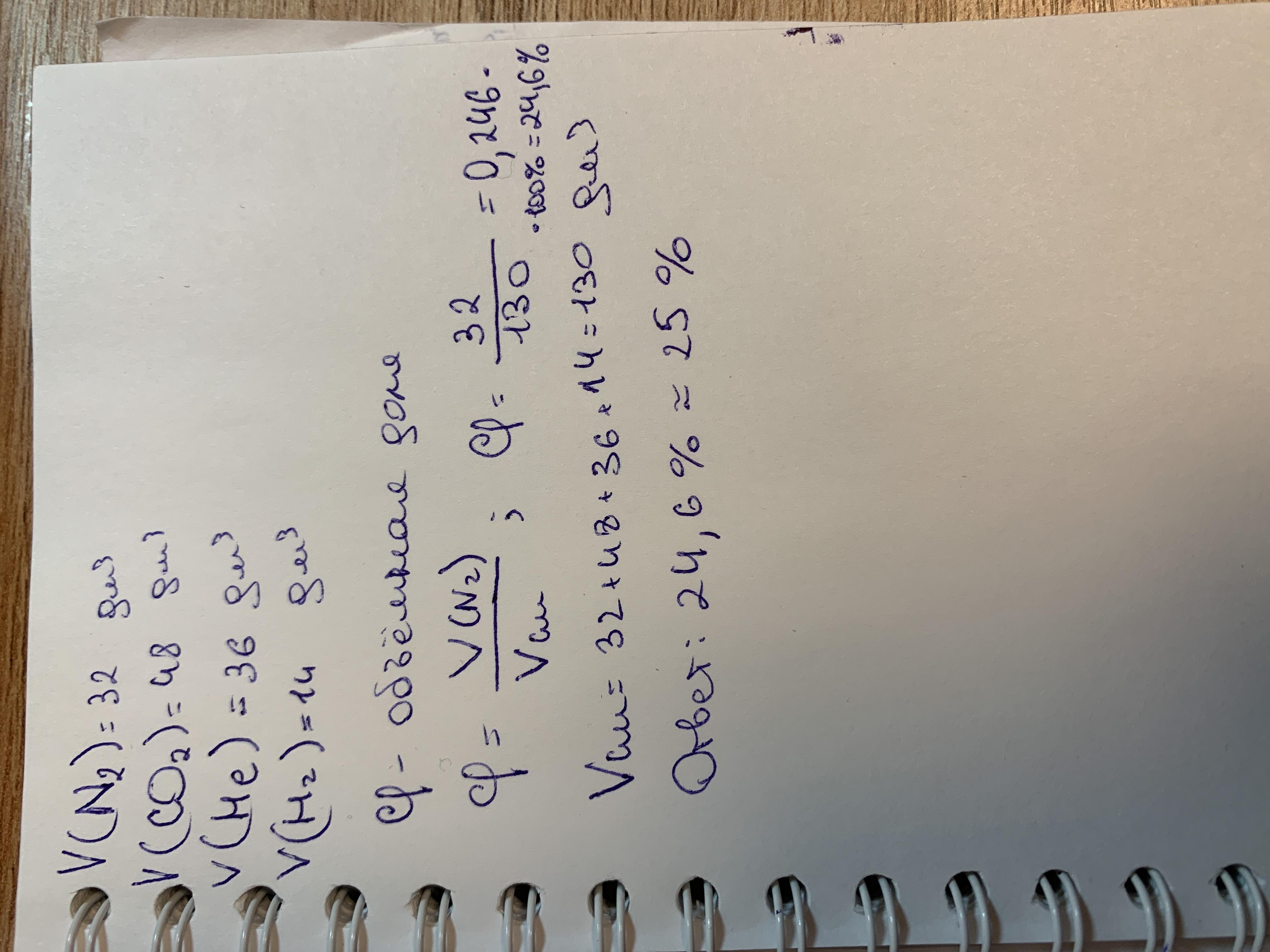 Вычислите объемную долю азота в смеси