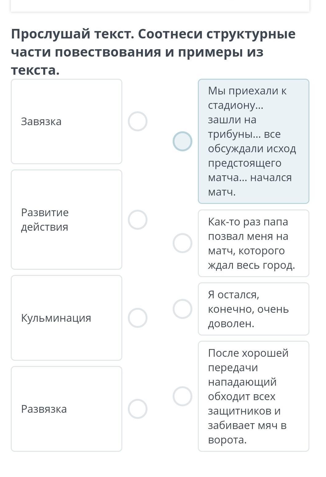 Развитие действий - Мы приехали к стадиону...зашли на трибуны...все обсуждали исход происходящего матча...начался матч.