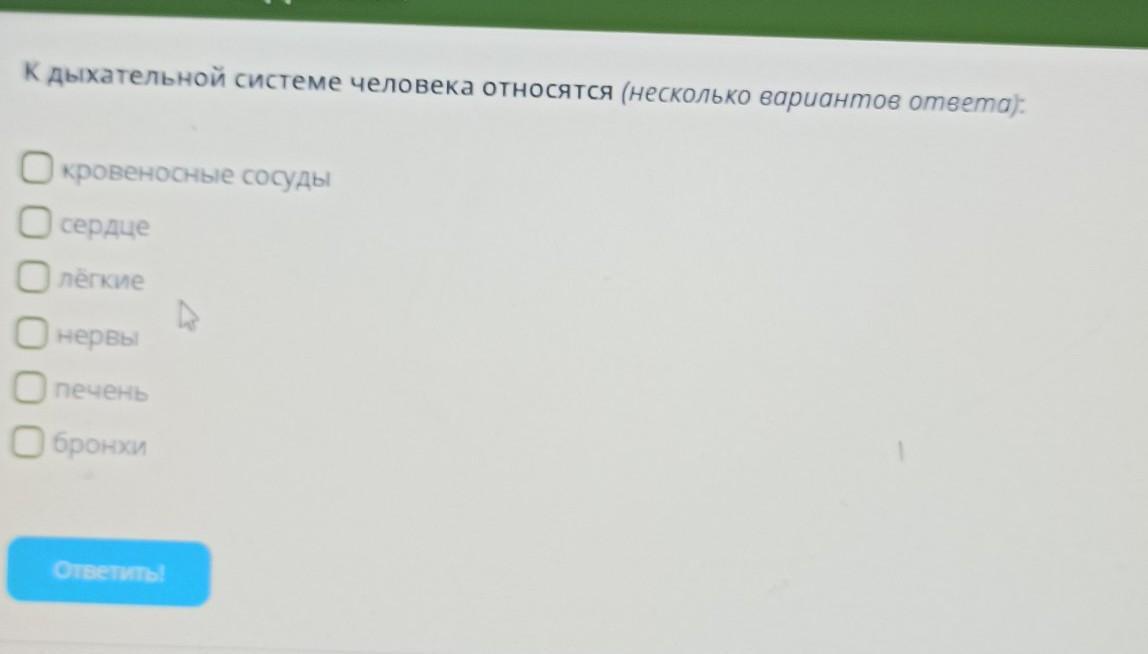 К дыхательной системе человека относятся (несколько вариантов oneema):