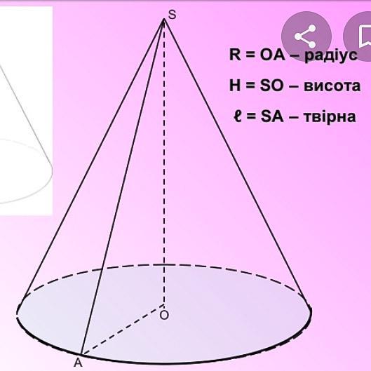 Твірна конуса SA є гіпотенузою прямокутного трикутника SOA, з кутом О = 90°.