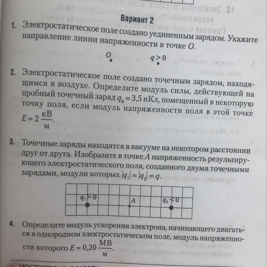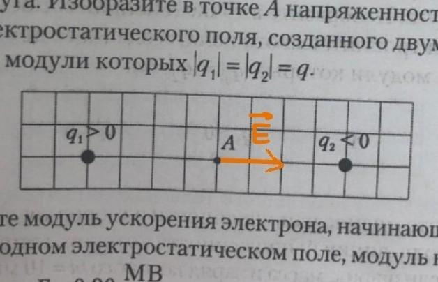 Когда на мнимый действует отрицательный q2, то вектор напряжённости будет начинаться на точке А и направлен в сторону К заряду q2. Длина вектора так же будет равна длине клетки, поскольку точка А отстоит от зарядов на равное количество клеток.