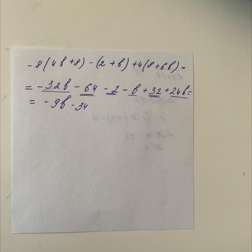 -8(4b+8)-(2+b)+4(8+6b) = -32b-64-2-b+32+24b = -9b-34