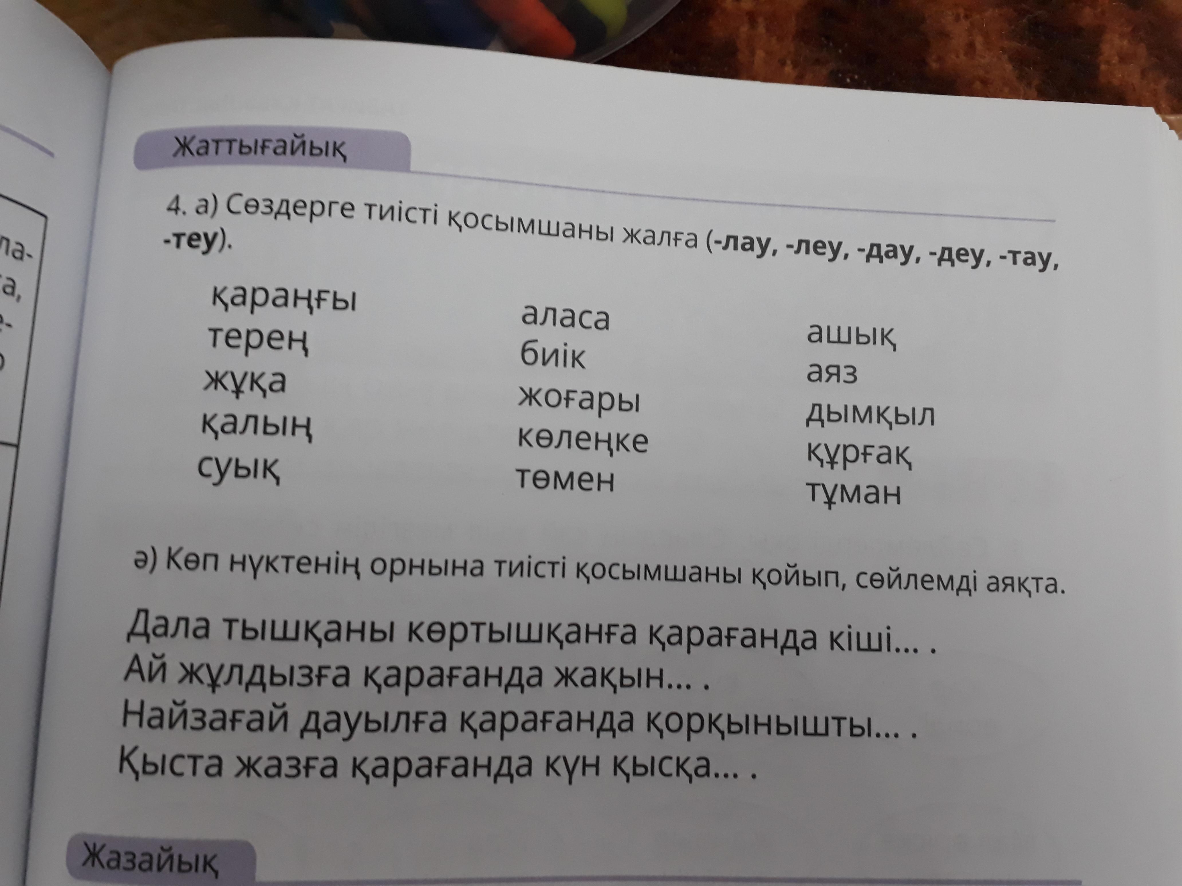 қараңғылау тереңдеу жұқалау қалыңдау суықтау аласалау биіктеу жоғарылау көлеңкелеу төмендеу ашықтау аяздау дымқылдау құрғақтау тұмандау