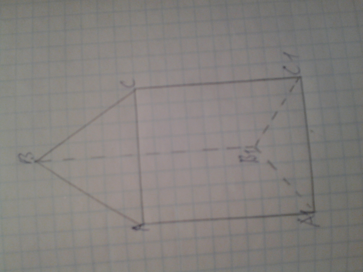 найдите вид спереди, вид сверху,вид слева треугольной призмы (например допустим вид спереди:прямоугольник,a1,a,c,c1